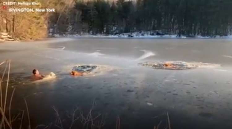Seccion: Un hombre y su mascota saltaron a un lago congelado de Nueva York para rescatar a dos perros