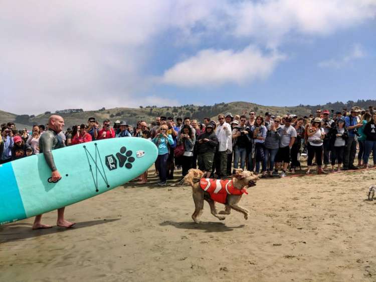 Docenas de perros compiten en Campeonato Mundial de Surf en California