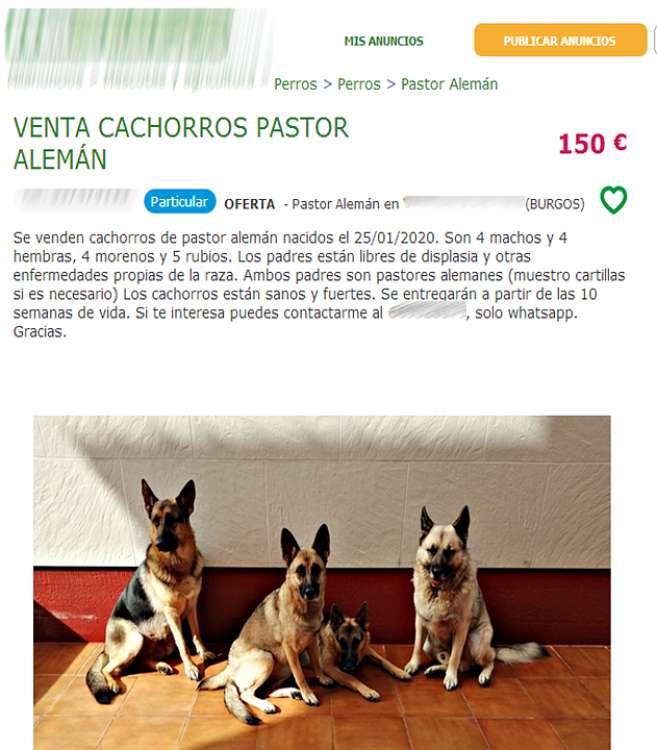 Seccion: Denunciada en Burgos una mujer por venta ilegal por internet de cachorros de Pastor Alemán.