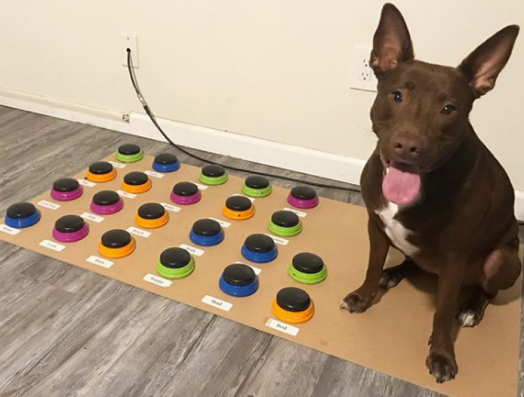 Una mujer enseña a su perro `hablar` mediante un pulsador de botones