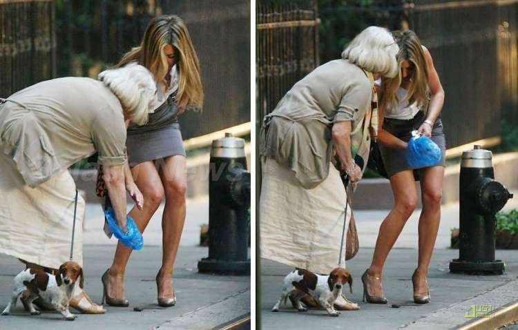 Seccion: Jennifer Aniston ayuda a una mujer mayor a recoger las heces de su perro