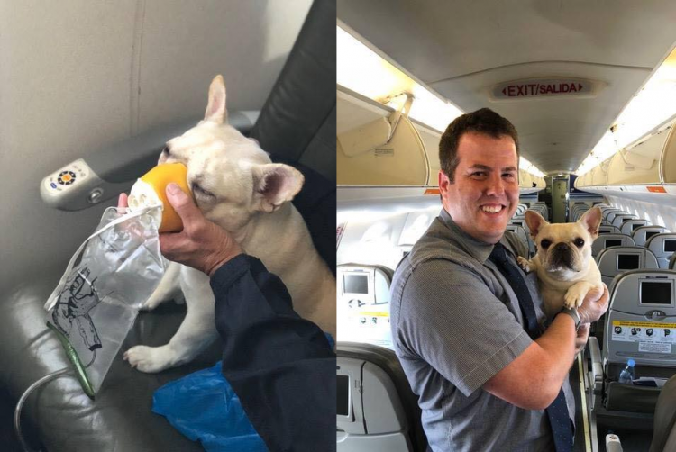 Tripulación de JetBlue salva a Bulldog Francés con una máscara de oxígeno durante un vuelo
