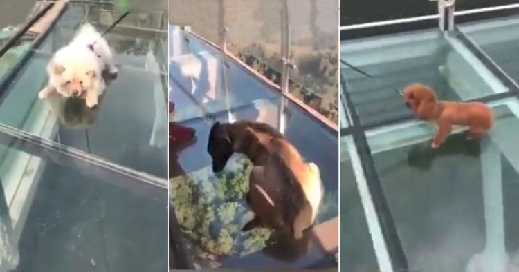 Así reaccionan los perros al pasar por un puente de cristal en China