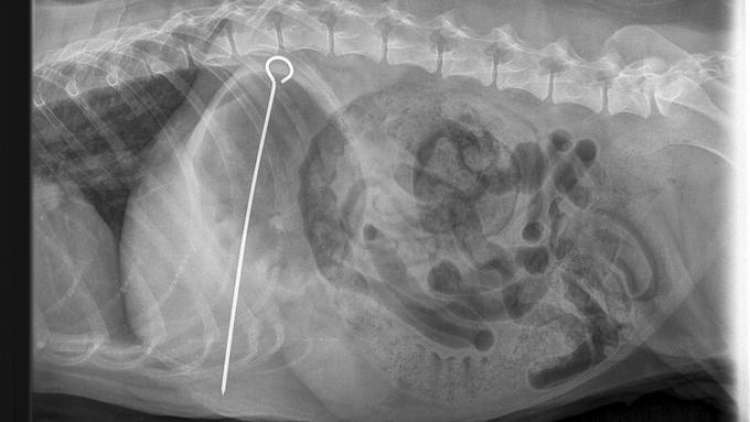 Veterinarios retiran un pincho de ocho pulgadas de un perro luego de tragárselo junto con un kebab